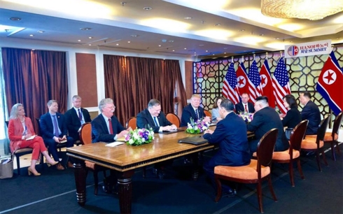 | การประชุมระหว่างประธานาธิบดีสหรัฐ โดนัลด์ ทรัมป์กับผู้นำสาธารณรัฐประชาธิปไตยประชาชนเกาหลี คิมจองอึน ดำเนินไปอย่างสร้างสรรค์ แม้การเจรจาเสร็จสิ้นเร็วกว่ากำหนด แต่ "ทั้งสองฝ่ายต่างมีความประสงค์ว่าจะพบปะกันอีกในอนาคต" (David Nakamura/WaPo) |