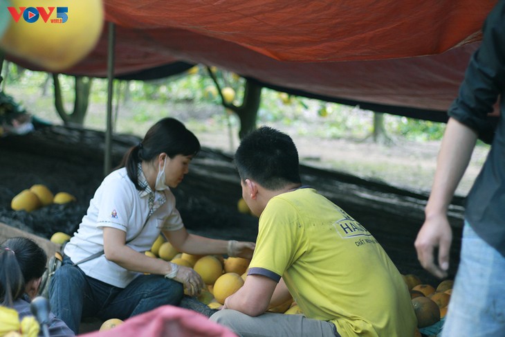 | ส้มโอ เหยียน เป็นผลไม้เฉพาะถิ่นของฮานอยซึ่งพ่อค้าและแม่ค้าจากท้องถิ่นต่างๆ สั่งซื้อเป็นจำนวนมาก |
