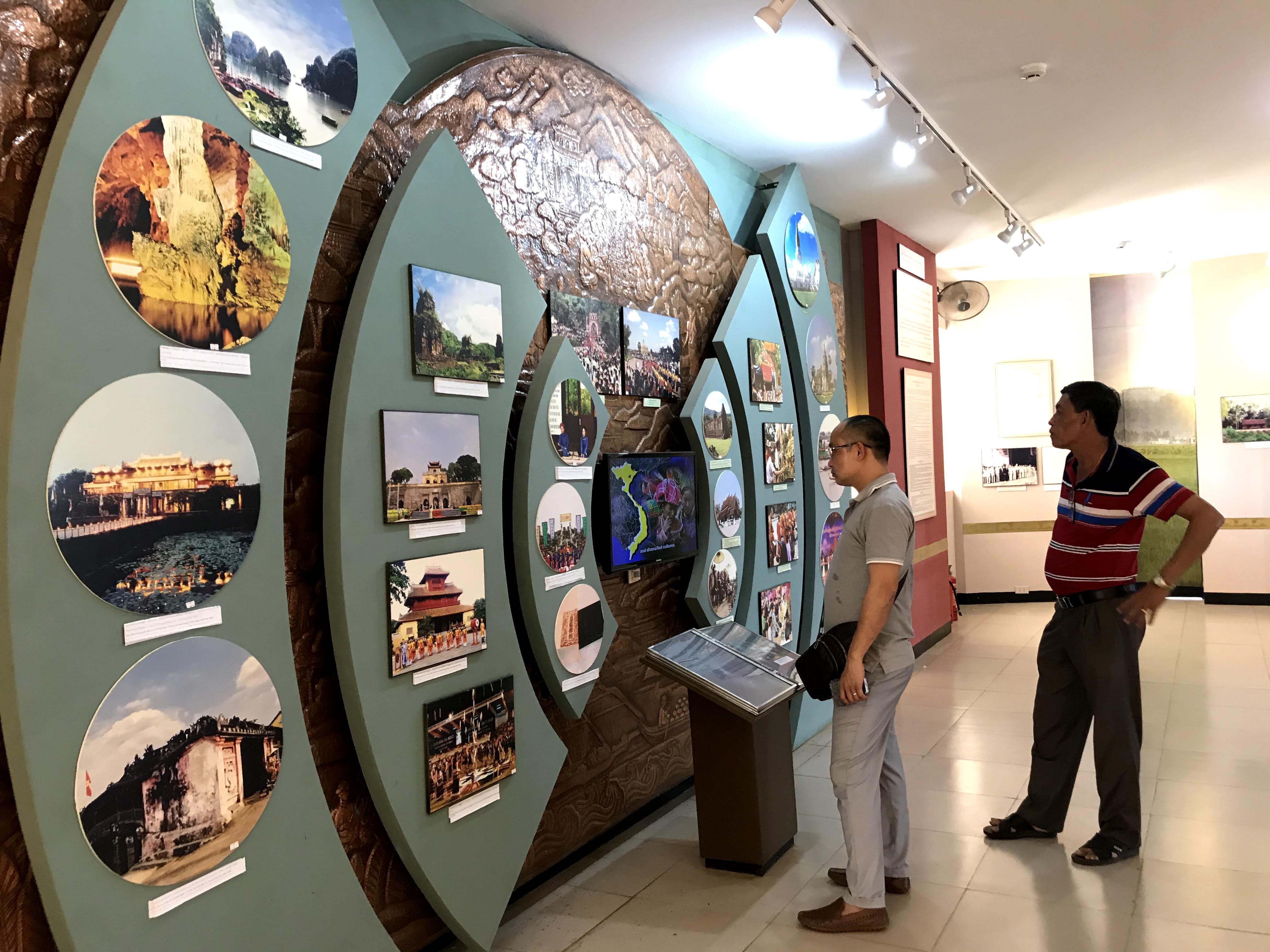 ภาพถ่ายและสิ่งของวัตถุของประธานโฮจิมินห์ที่จัดแสดงในอนุสรณ์สถานแห่งนี้