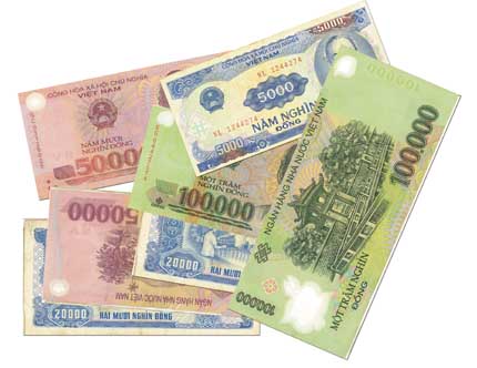 (VOVworld) - เงินเวียดนามได้แบ่งเป็น 2 ประเภทคือ เหรียญและธนบัตร โดยมูลค่าเงินที่มีทั้งเหรียญและธนบัตรก็คือ 200 ด่ง (ฮายจำด่ง) 500 ด่ง (นัมจำด่ง) 1000 ด่ง (หมดหงิ่นด่ง) 2000 ด่ง (ฮายหงิ่นด่ง) และ 5000 ด่ง (นัมหงิ่นด่ง) ส่วนเงินตั้งแต่ 10000 ด่ง (เหมื่อยหงิ่นด่ง) ขึ้นไปจะมีเฉพาะธนบัตร คือ10000 ด่ง (เหมื่อยหงิ่นด่ง) 20000 ด่ง (ฮายเมือยหงิ่นด่ง) 50000 ด่ง (นัมเมือยหงิ่นด่ง) 100000 ด่ง (หมดจำหงิ่นด่ง) 200000 ด่ง (ฮายจำหงิ่นด่ง) และ 500000 ด่ง (นัมจำหงิ่นด่ง) แต่เดี๋ยวนี้ ไม่มีการใช้เหรียญมีแต่ธนบัตรเพียงอย่างเดียว