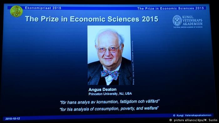 (VOVworld) - พิธีมอบรางวัลโนเบลสาขาเศรษฐศาสตร์ประจำปี 2015 ซึ่งเป็นสาขาสุดท้ายได้มีขึ้น เมื่อวันที่ 12 ตุลาคม โดยสภารางวัลโนเบลได้เผยว่า ศาสตราจารย์ Angus Deaton ซึ่งถือสัญชาติอังกฤษและอเมริกันได้คว้ารางวัลโนเบลสาขาเศรษฐศาสตร์ จากผลงานการศึกษาและวิเคราะห์ปัญหาความยากจน ประเด็นเรื่องสวัสดิการ และการบริโภค