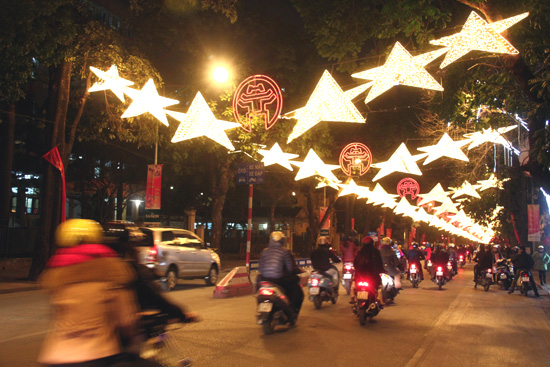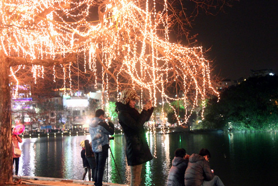 (VOVworld)- กรุงฮานอยในวันส่งท้ายปีเก่าต้อนรับปีใหม่2013แม้ตอนกลางวันจะไม่แออัดจอแจเหมือนปกติแต่เมื่อใกล้ที่จะถึงช่วงเวลาส่งท้ายปีเก่าต้อนรับปีใหม่บรรยากาศรอบสระหว่านเกี๊ยมหรือสระคืนดาบในใจกลางเมืองจะมีความคึกคักและรื่นเริงมากขึ้น โดยชาวฮานอยและชาวท้องถิ่นที่ไกล้เคียงได้พากันมาชุมนุมอย่างคึกคักเพื่อรอนับถอยหลังรับปีใหม่และชมดอกไม้ไฟ
