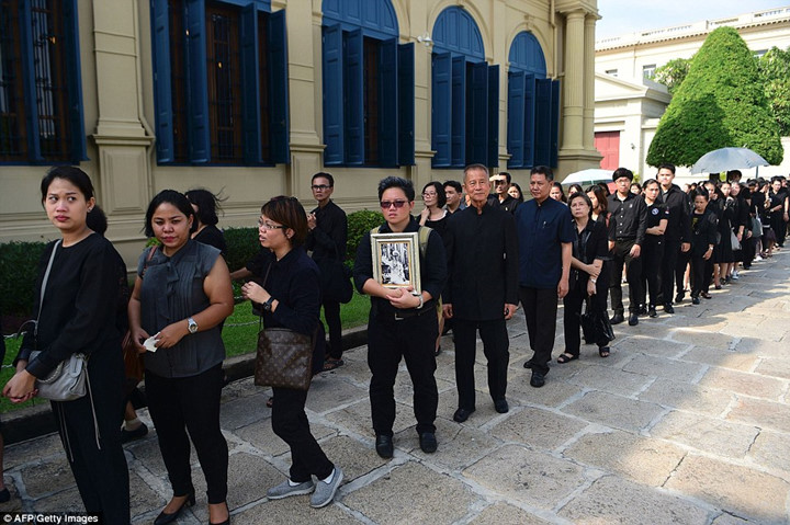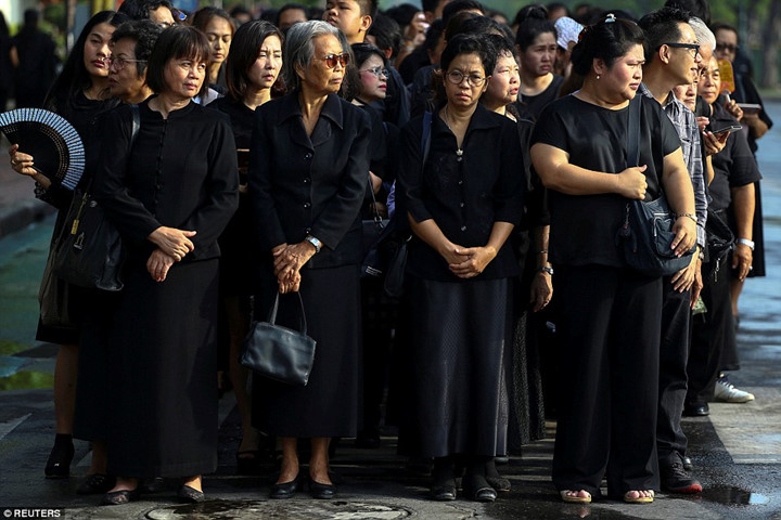 ประชาชนไทยทั้งประเทศได้ปฏิบัติตามคำเรียกร้องของรัฐบาลที่ขอเชิญชวนให้ประชาชนคนไทยแต่งชุดสีดำถวายความอาลัยพระบาทสมเด็จพระเจ้าอยู่หัว ในพระบรมโกศเป็นเวลาหนึ่งปี สถานที่ราชการ ลดธงครึ่งเสา เป็นเวลา 30 วัน และทุกภาคส่วน ควรพิจารณางดการจัดงานรื่นเริงต่างๆ เป็นเวลา 30 วัน.