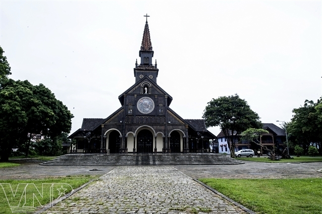 | โบสถ์ไม้ที่ได้รับการ่อสร้างขึ้นเมื่อปี 1913 และมีสถาปัตยกรรมที่เป็นเอกลักษณ์โดดเด่นในจังหวัด Kon Tum (Photo: VNP) |