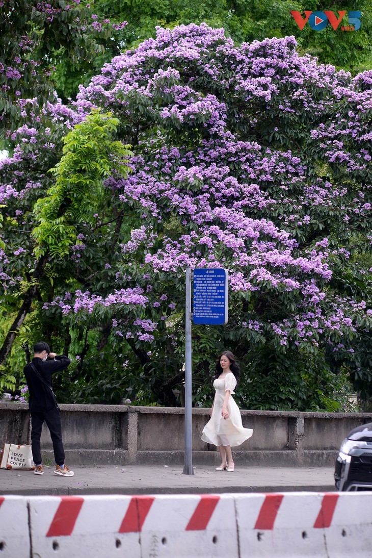 สภาพอากาศในปีนี้เอื้ออำนวย ซึ่งตั้งแต่ต้นเดือนพฤษภาคม ดอกอินทนิลได้บานสะพรั่งตามถนนสายต่างๆ ของกรุงฮานอย ดึงดูดชาวฮานอยและนักท่องเที่ยวมาถ่ายรูปเช็คอินจำนวนมาก |