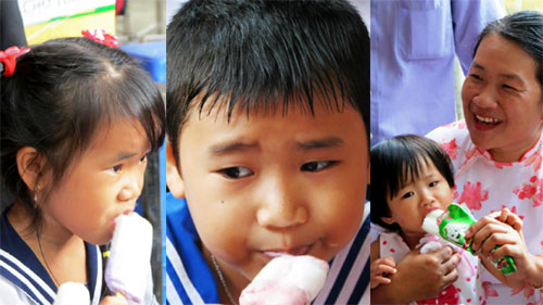 | ซึ่งเป็นครั้งแรกที่เด็กที่นี่กินไอศครีม |