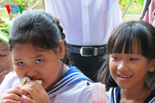 ของขวัญจากแผ่นดินใหญ่ที่ส่งไปให้ทหารและประชาชนที่เกาะ Trường Sa หรือ เสปตลี่ส่วนใหญ่คือ สิ่งของที่ใช้ในชีวิตประจำวัน และ อาหาร เป็นต้น แต่ในการเยือนเกาะ Trường Sa ครั้งนี้ คณะผู้แทนของพรรคสาขานครโฮจิมินห์ได้มีความคิดริเริ่มในการเอาไอศครีมไปให้เด็กบนเกาะแห่งนี้ เพราะ เด็กที่นี่ไม่เคยกินไอศครีม ทุกวัน นักเรียนนับสิบคนบนเกาะTrường Sa ใหญ่ก็ไปโรงเรียนเหมือนนักเรียนบนแผ่นดินใหญ่