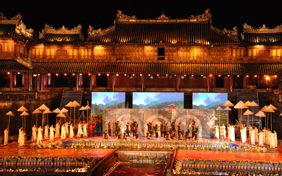 (VOVworld)-รายการแสดงต่างๆในงานได้พาผู้ชมเดินทางไปสัมผัสกับความสวยงามของมรดกตามท้องถิ่นต่างๆริมฝั่งทะเลภาคกลางตอนเหนือเช่น กำแพงราชวง โห่ เขตโบราณสถานลามกิง ศิลปะการร้องเพลงพื้นเมืองในจ.เหงะอาน ถ้ำ Phong Nha-Ke Bang กำแพงเก่า กว๋างตริ และไปจบลงที่กรุงเก่าเว้ นอกจากนี้ผู้ชมยังได้สัมผัสกับบรรยากาศวัฒนธรรมที่โดดเด่นของหลายประเทศจากการแสดงของคณะนาฏศิลป์ของจีน รัสเซีย สาธารณรัฐเกาหลีและฝรั่งเศส