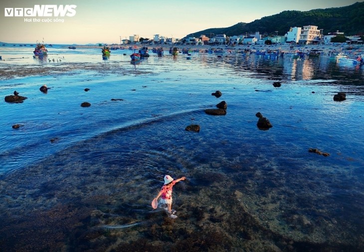 เกาะห่อนโค อยู่ในตำบลเญินหาย ห่างจากตัวเมืองกวีเญินไปทางทิศเหนือประมาณ 18 กม. เกาะแห่งนี้มีชื่อเสียงในเรื่องความสวยงามของเเนวปะการังชายฝั่งเเละทุ่งสาหร่ายใต้ทะเลที่สวยงาม (รูปภาพ Nguyễn Gia/VTC News) |