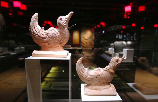 ![]() ในเขตนี้ยังมีภาพผนังที่ประกอบจากเศษกระเบื้องที่ถูกค้นพบ ณ ที่นี่ที่สะท้อนให้เห็นถึงภาพรวมของกระบวนการก่อสร้างกรุงทังลองในประวัติศาสตร์ นั่นคือภาพ “รุ่งอรุณทังลอง”