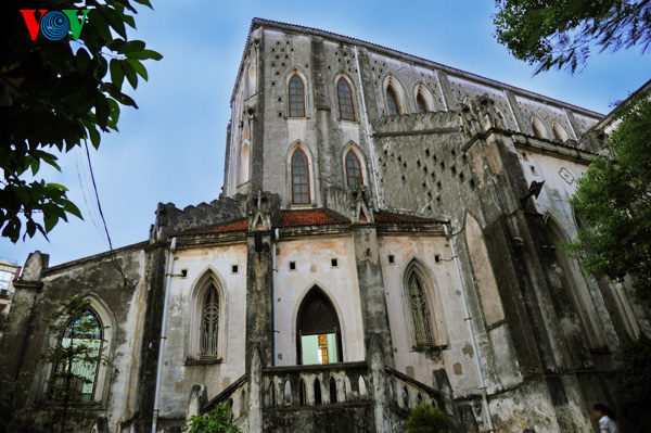| โบสถ์ใหญ่ฮานอยมีความยาว 64.5 เมตร กว้าง 20.5 เมตร หอระฆัง 2 แห่ง มีความสูง 31.5 เมตร |