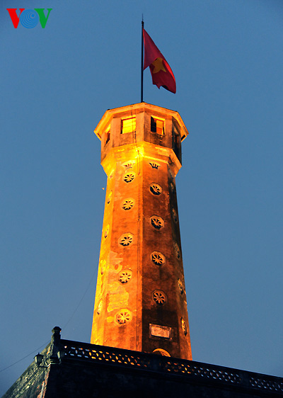 | หอธงฮานอยที่ถนนเดียนเบียนฟู เขตบาดิ่งห์ ซึ่งอยู่ทางทิศใต้ของพระราชวังหว่างแถ่งทังลอง ก่อสร้างขึ้นเมื่อปีค.ศ. 1812 ในสมัยของกษัตริย์ ยาลอง ราชวงค์เหงวียน |