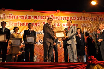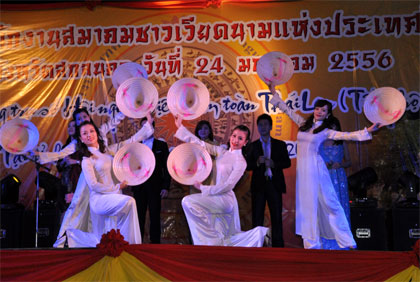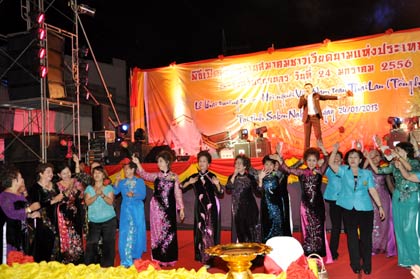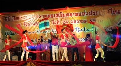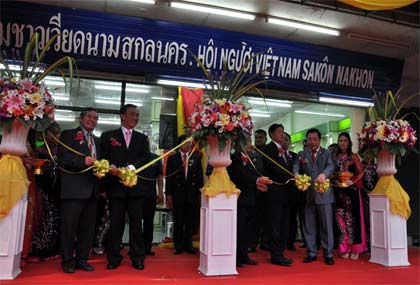 (VOVworld)- พิธีเปิดสำนักงานสมาคมชาวเวียดนามแห่งประเทศไทยได้มีขึ้นเมื่อค่ำวันที่24มกราคม ณ จ.สกลนคร โดยมีตัวแทนชาวเวียดนามในประเทศกว่า2พันคนพร้อมเจ้าหน้าที่รัฐบาลทั้งสองประเทศเข้าร่วม ในการกล่าวปราศรัยเปิดงาน ท่านเหงวียนแทงเซิน รัฐมนตรีช่วยกระทรวงการต่างประเทศเวียดนามได้ยืนยันว่า การเปิดสำนักงานสมาคมชาวเวียดนามแห่งประเทศไทยได้เป็นการพิสูจน์ให้เห็นถึงความสามัคคีมิตรภาพและความสัมพันธ์ที่แน่นแฟ้นระหว่างประชาชนสองประเทศเวียดนาม-ไทยว่ากำลังได้รับการธำรงและพัฒนาอย่างต่อเนื่องตามความปรารถนาของพระมหากษัตริย์ไทย รัฐบาลและประชาชนทั้งสองประเทศ พวกเราหวังว่าชมรมชาวเวียดนามในประเทศไทยรวมทั้งสมาคมชาวเวียดนามแห่งประเทศไทยจะพัฒนาเป็นแบบอย่างดีเด่นให้แก่ประชาคมชาวเวียดนามในทั่วโลก ส่วนในนามรัฐบาลไทย นายสุวัฒน์ ตันติพัฒน์ ผู้ช่วยรัฐมนตรีประจำกระทรวง ศึกษาธิการไทยได้กล่าวชื่นชมบทบาทและส่วนร่วมของชมรมชาวเวียดนามในประเทศไทยและเห็นว่า การเปิดสำนักงานสมาคมชาวเวียดนามแห่งประเทศไทยจะอำนวยความสะดวกมากขึ้นเพื่อให้ชมรมชาวเวียดนามมีส่วนร่วมต่อการพัฒนาของไทยรวมทั้งความสัมพันธ์อันดีงามระหว่างสองประเทศ