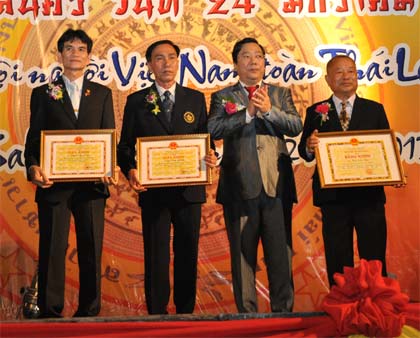 | มอบหนังสือชมเชยของกระทรวงให้แก่นาย กาววันซาน ประธานสมาคมชาวเวียดนามแห่งประเทศไทยและชาวเวียดนามในประเทศไทย(quehuongonline.vn) |