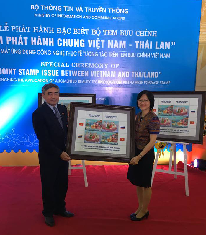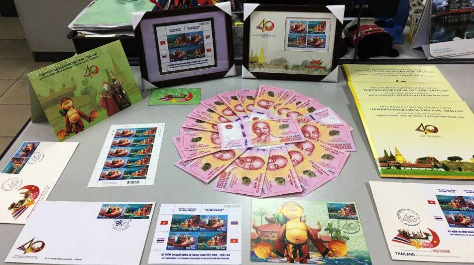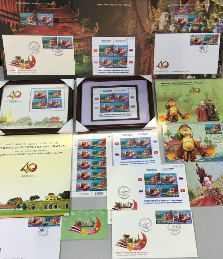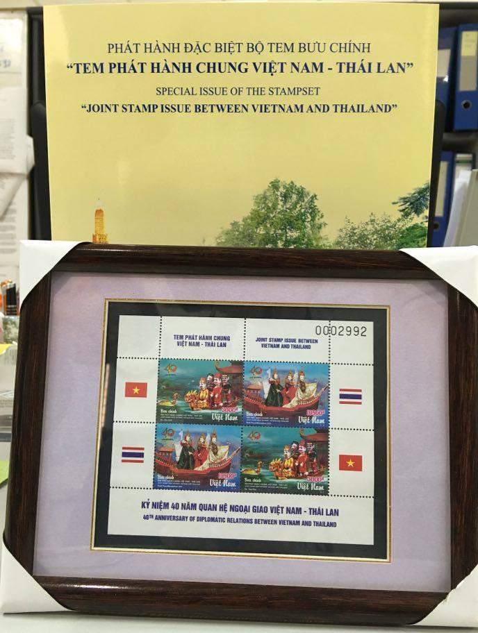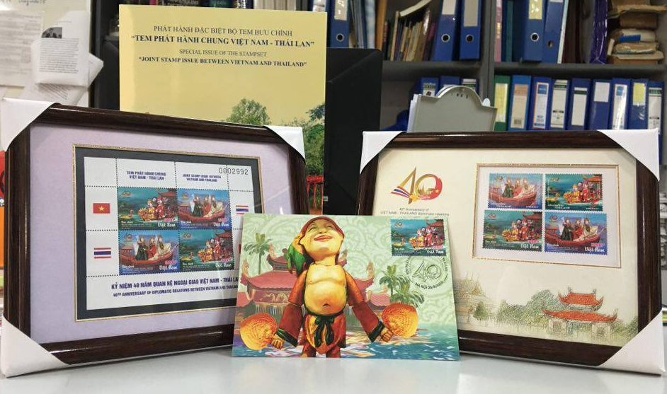 (VOVworld) – เนื่องในโอกาสฉลองครบรอบ 40 ปีการสถาปนาความสัมพันธ์ทางการทูตระหว่างเวียดนามกับไทย ซึ่งตรงกับวันที่ 6 สิงหาคม เมื่อเช้าวันที่ 5 สิงหาคม กระทรวงสื่อสารและประชาสัมพันธ์ได้ประสานกับกลุ่มบริษัทไปรษณีย์จัดพิธีเปิดตัวดวงตราไปรษณียากรเวียดนาม-ไทย ณ กรุงฮานอย ประเทศเวียดนามและกรุงเทพฯ ประเทศไทย โดยจัดแสดงสแตมป์ 2 ชุดภายใต้หัวข้อ “หุ้นกระบอก” ซึ่งเป็นศิลปะพื้นเมืองของไทยและเวียดนาม