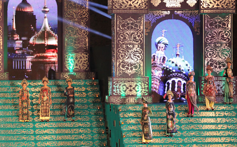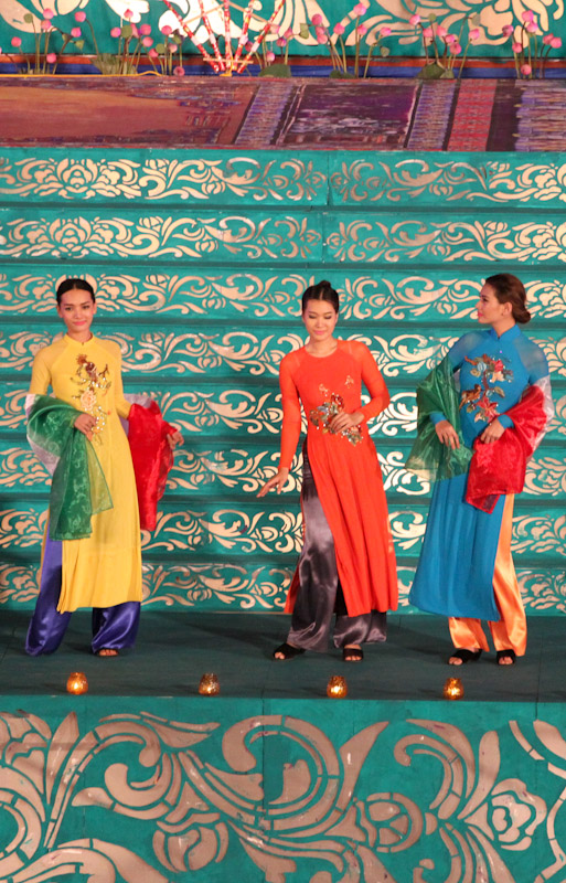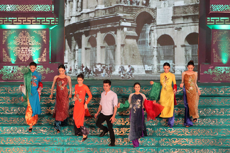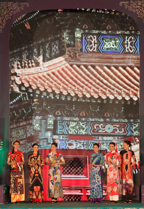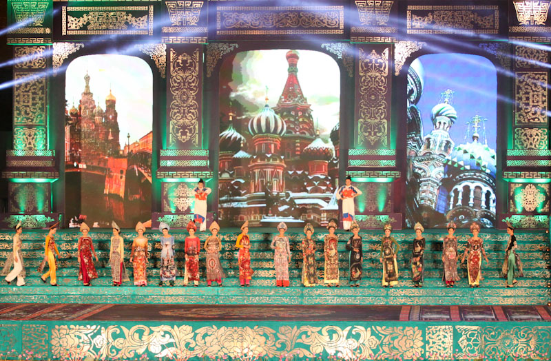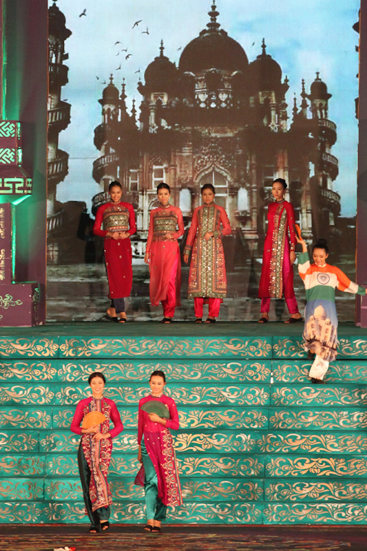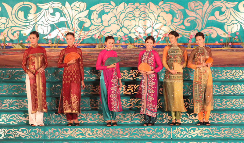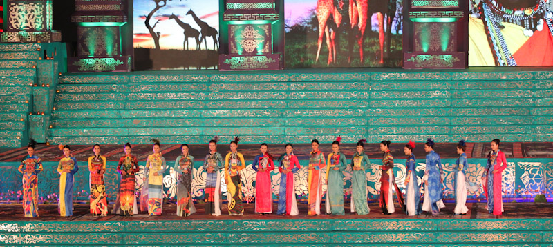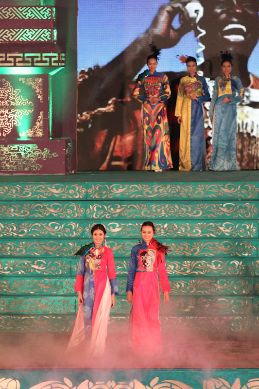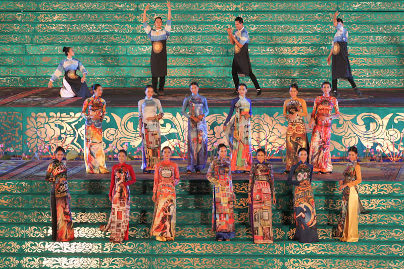 (VOVworld)-เทศกาล "โลกในชุดประจำชาติอ๊าวหย่ายเวียดนาม"เป็นหนึ่งในกิจกรรมหลักของงานเฟสติวัลเว้2014 เวทีเดินแฟชั่นมีความสวยงามอลังการ โดยออกแบบใช้โทนสีม่วงเป็นหลักและตกแต่งลวดลายศิลปะของพระราชวังเว้พร้อมศิลปะในการจัดแสดงพลุของศิลปิน Alain Hurbert ในงานได้มีการเดินแฟชั่นชุดประจำชาติ อ๊าวหย่ายของนักออกแบบ 18 คนจากทั้งสามภาคของเวียดนาม ซึ่งสะท้อนภาพลักษณ์และเอกลักษณ์ของ 18 ชาติทั่วโลกผ่านลวดลายต่างๆ และการเดินแบบได้มีขึ้นท่ามกลางเสียงดนตรีประกอบของประเทศนั้นๆ