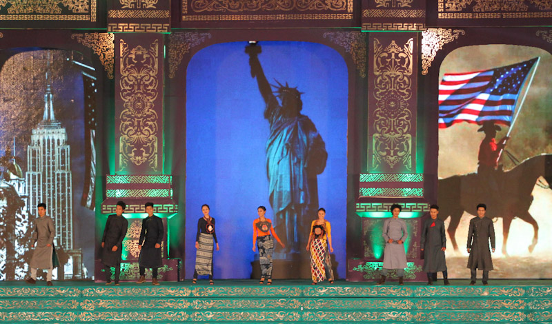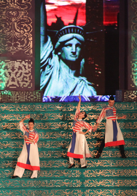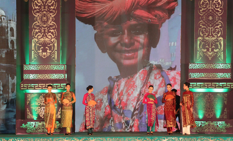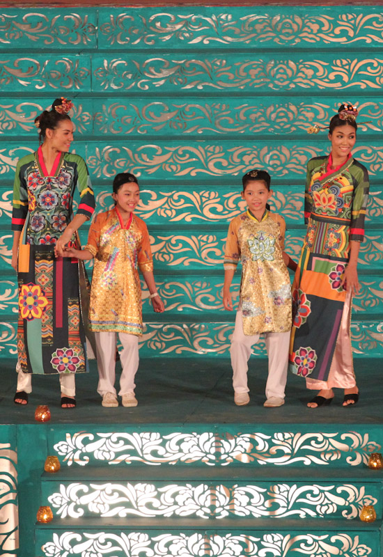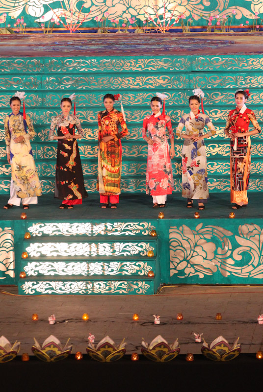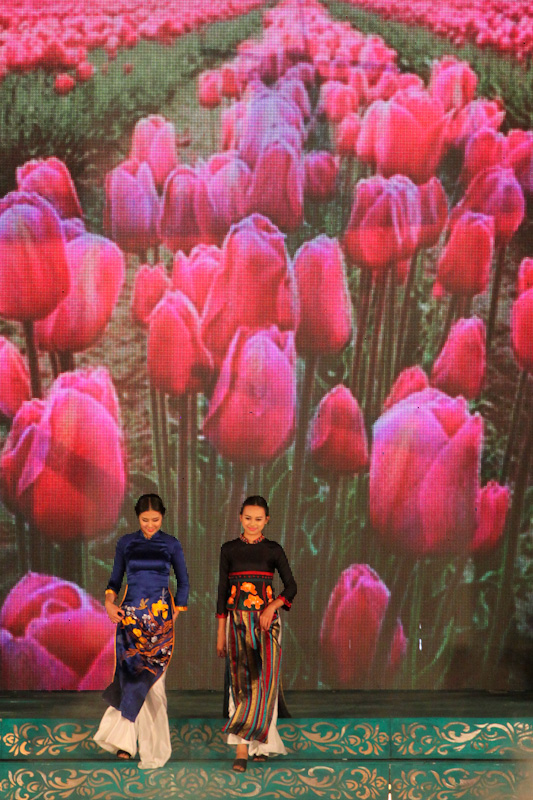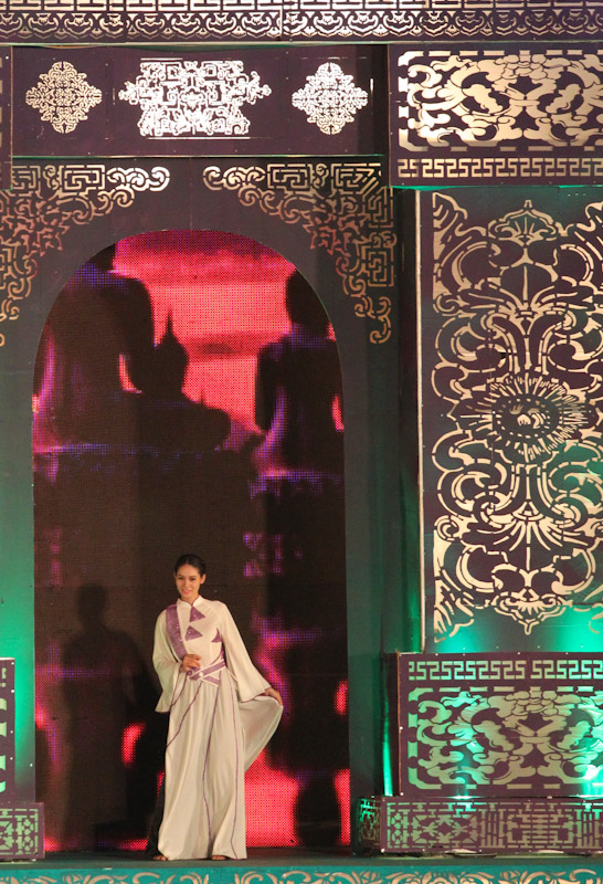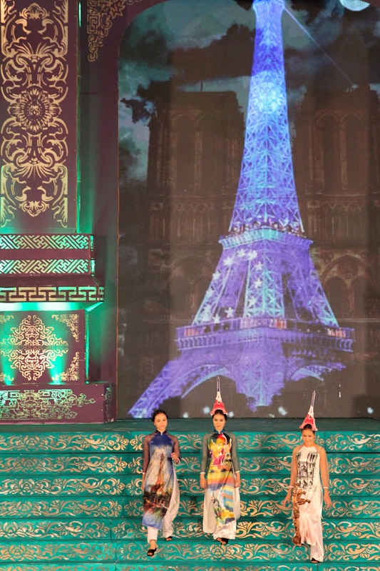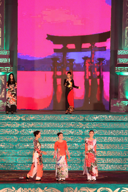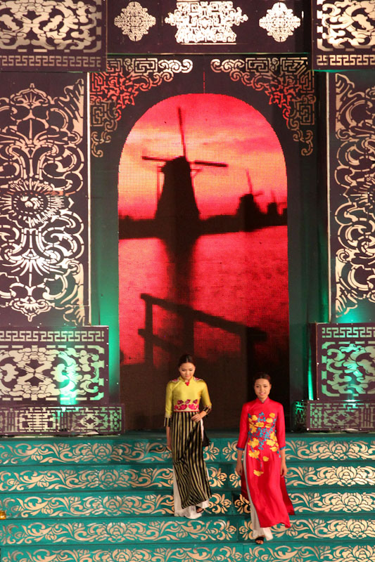 (VOVworld)-เทศกาล "โลกในชุดประจำชาติอ๊าวหย่ายเวียดนาม"เป็นหนึ่งในกิจกรรมหลักของงานเฟสติวัลเว้2014 เวทีเดินแฟชั่นมีความสวยงามอลังการ โดยออกแบบใช้โทนสีม่วงเป็นหลักและตกแต่งลวดลายศิลปะของพระราชวังเว้พร้อมศิลปะในการจัดแสดงพลุของศิลปิน Alain Hurbert ในงานได้มีการเดินแฟชั่นชุดประจำชาติ อ๊าวหย่ายของนักออกแบบ 18 คนจากทั้งสามภาคของเวียดนาม ซึ่งสะท้อนภาพลักษณ์และเอกลักษณ์ของ 18 ชาติทั่วโลกผ่านลวดลายต่างๆ และการเดินแบบได้มีขึ้นท่ามกลางเสียงดนตรีประกอบของประเทศนั้นๆ
