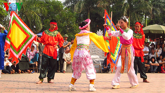 | การรำ “ cởi giáp vú mo” จากตำนาน ที่เล่าขาน วีรสตรี เลฮวา ได้คิดค้นวิธีการทำเสื้อเกราะด้วยกาบหมาก ให้แก่นักรบหญิง เมื่อบ้านเมืองมีความสงบสุขก็ถอดเสื้อกาบหมากออกเพื่อปฎิบัติหน้าที่ดูแลงานบ้านต่อไป |