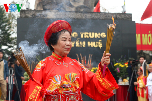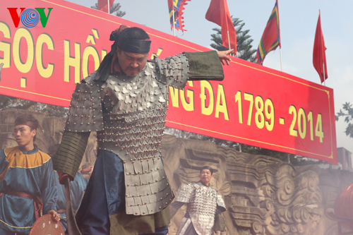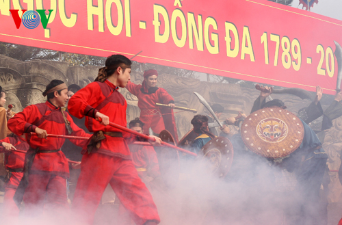 (VOVworld) - เช้าวันที่ 5 เดือนอ้ายตามจันทรคติ ณ เนินโด๊งดา กรุงฮานอยได้มีการจัดเทศกาลเนินโด๊งดาเพื่อรำลึกครบรอบ 225 ปีชัยชนะหงอกโห่ย – โด๊งดา ซึ่งถือเป็นเทศกาลประจำปีเพื่อยกย่องชัยชนะของกษัตริย์กวางจูงหรือเหงียนเหวะ ผู้ที่ได้นำกองทัพต่อสู้กับศัตรูผู้รุกรานชิงเพื่อปกป้องประเทศเมื่อปีพศ. 1789