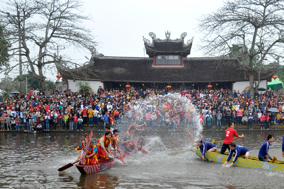 | เทศกาลวัด แบกห่าว มีการจัดการละเล่นพื้นเมืองต่างๆ เช่นการแข่งเรือ |