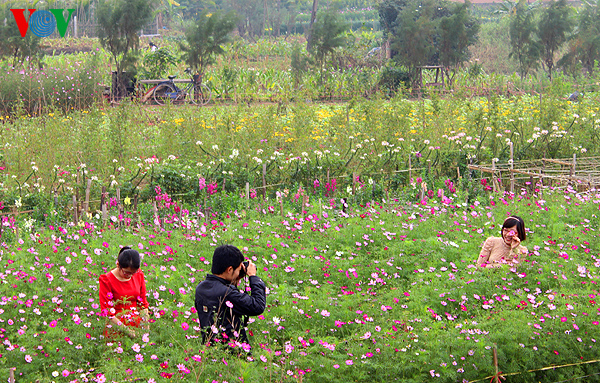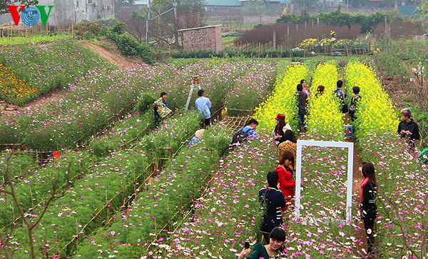 ถ้ามีโอกาสไปเที่ยวสวนดอกไม้ Nhật Tân ในช่วงนี้ นักท่องเที่ยวจะสามารถสัมผัสกับบรรยากาศต้อนรับเทศกาลตรุษเต็ตที่ใกล้จะมาถึง โดยสวนดอกไม้ต่างๆเหมือนปูด้วยพรมอันหลากสีที่ของเหล่าพฤกษชาตินานาพันธุ์ไม่ว่าจะเป็นดอกท้อสีชมพู ส้มจี๊ดสีเหลือง ดอเยอบีร่าสีแดง ดอกไวโอเลสสีม่วง ซึ่งได้ดึงดูดใจชาวนครหลวง โดยเฉพาะเยาวชนที่อยากถ่ายภาพบรรยากาศยามวสันต์
