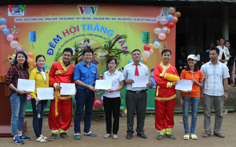 (VOVworld) - ในระหว่างวันที่ 9 ถึงวันที่ 10 กันยายนที่ผ่านมา กองเยาวชนสถานีวิทยุเวียดนามได้ร่วมกับหน่วยงานท้องถิ่นและองค์กรต่างๆ จัดงานเทศกาลไหว้พระจันทร์ให้แก่เด็กๆ ชาวเขาในจังหวัดเหงะอาน