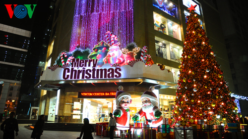 (VOVworld) - ตั้งแต่ต้นเดือนธันวาคม ศูนย์การค้า แหล่งชอปปิ้งต่างๆ ภัตตาคาร สถานบันเทิงและโบถส์ต่างๆในกรุงฮานอยจะได้รับการประดับประดาอย่างสวยงามตระการตาไม่ว่าจะเป็นต้นคริสต์มาส ตุ๊กตาหิมะ รถลากเลื่อนพร้อมกวางเรนเดียร์ เป็นต้น ซึ่งดึงดูดความสนใจของหนุ่มสาวและนักท่องเที่ยวที่มาเก็บภาพอันสวยงามเป็นที่ระลึก