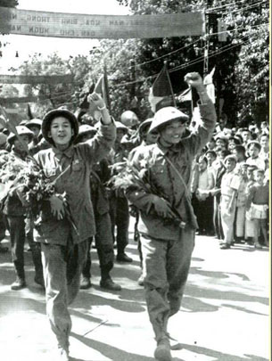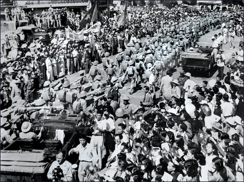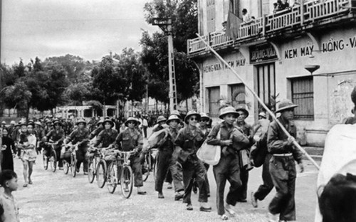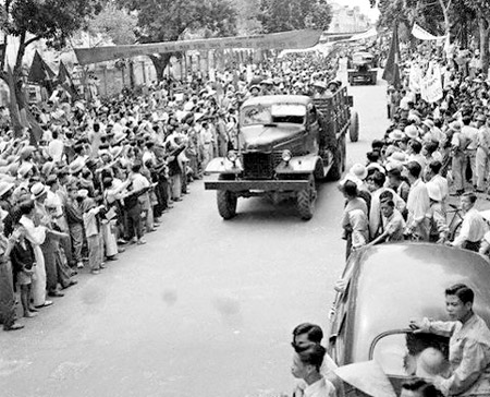 | หน่วยทหารต่างๆได้เคลื่อนทัพเข้าฮานอยท่ามกลางบรรยากาศอันฮึกเหิมแห่งชัยชนะและความปลึ้มปิติยินดีของชาวนครหลวง |