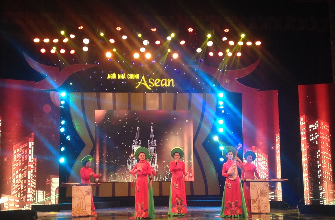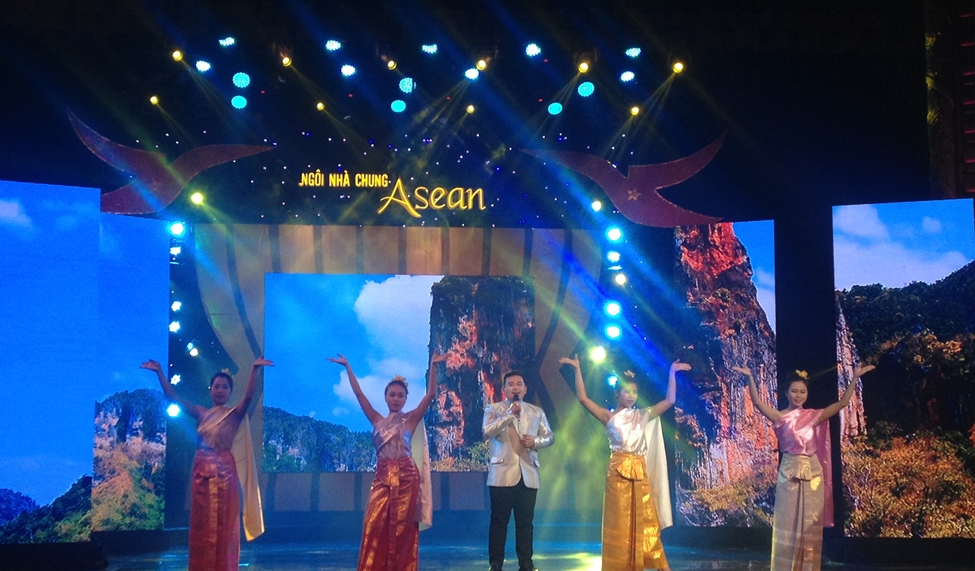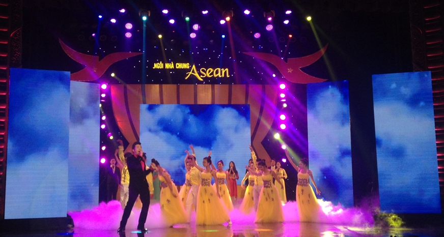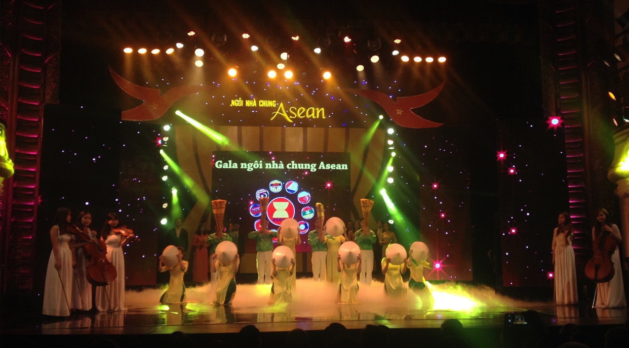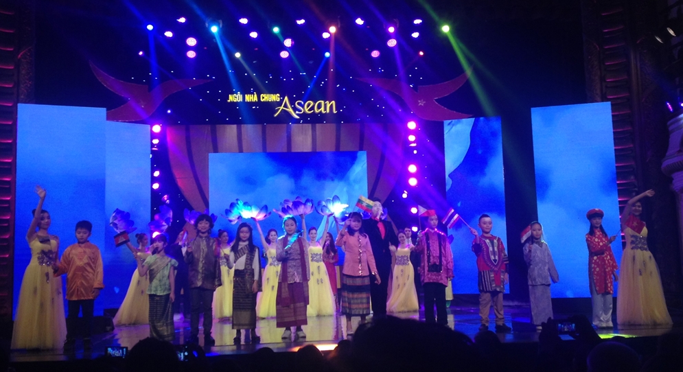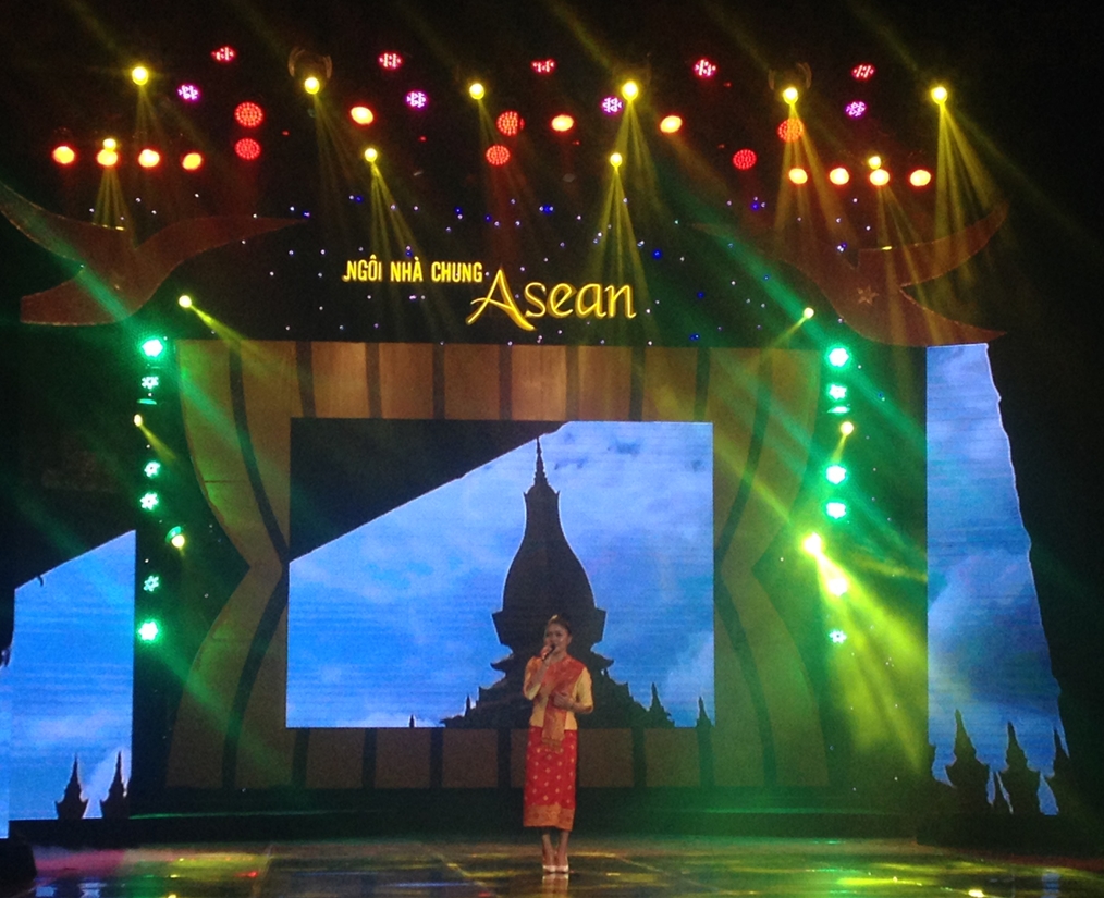 (VOVworld) - กาล่า “ASEAN Common House” หรือในภาษาไทยหมายความว่า “ชายคาอาเซียน“ ได้จัดขึ้นโดยสถานีวิทยุและโทรทัศน์ฮานอย เป็นหนึ่งในงานแสดงศิลปะพิเศษเพื่อฉลองการเปิดตัวของประชาคมเศรษฐกิจอาเซียนสิ้นปีนี้ ซึ่งถือเป็นก้าวกระโดดอันสำคัญในการผสมผสานของทุกประเทศในอาเซียนเพื่อมุ่งสู่ความเป็นหนึ่งเดียวอย่างแข็งแกร่งและการเข้ากับเศรษฐกิจโลกได้อย่างสมบูรณ์ รายการภาคภาษาไทย สถานนีวิทยุเวียดนามขอเสนอประมวลภาพการแสดงที่พร้อมไปด้วยแสง สี และเสียงอย่างสุดอลังการโดยบรรดาศิลปินจากประเทศสมาชิกอาเซียนทั้งหลาย.