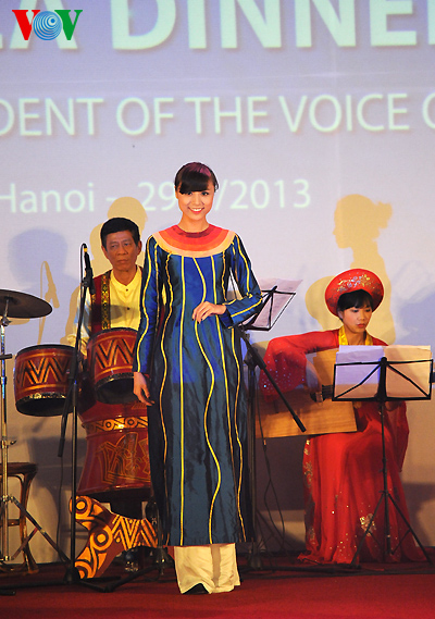 (VOVWorld)-ในกรอบการประชุมการกระจายเสียงเอเชียปี๒๐๑๓ ณ โรงแรม เมเลีย กรุงฮานอยได้มีการจัดการเดินแฟชั่นโชว์ชุดอ๋าวหย่ายของบริษัทแฟชั่นจูลา ซึ่งถือเป็นการผสมผสานอย่างลงตัวระหว่างวัฒนธรรมของตะวันออกกับตะวันตกผ่านการใช้วัตถุดิบของเวียดนามและการเย็บปักถักร้อยแบบดั้งเดิม โดยในการเดินแฟชั่นโชว์ แฟชั่นชุดอ๋ายหย่ายท่ามกลางเพลงพื้นเมืองเวียดนามกาจู่และเพลงแนวลาตินได้พาผู้ชมดื่มด่ำในบรรยากาศของแฟชั่นยุโรปที่แสนไกลมาสู่บรรยากาศวัฒนธรรมพื้นเมืองเวียดนาม
