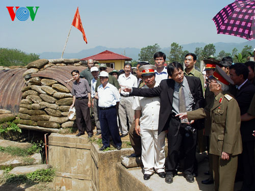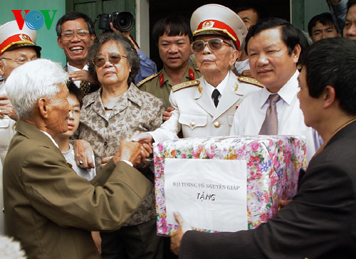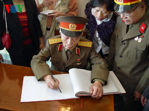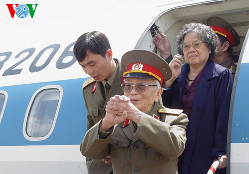 (VOVworld) – เมื่อเดือนเมษายนปี 2004 ในโอกาสรำลึกครบรอบ 50 ปีชัยชนะเดียนเบียนฟู แม้อายุ 92 ปีและสุขภาพไม่ดีแต่พลเอกหวอเหงียนย้าบยังคงเดินทางกลับไปเยือนสมรภูมิเก่า เยี่ยมเพื่อนสหายและประชาชนในอำเภอเดียนเบียน นี่ก็คือการเยือนเดียนเบียนครั้งสุดท้ายของพลเอหวอเหงียนย๊าบ