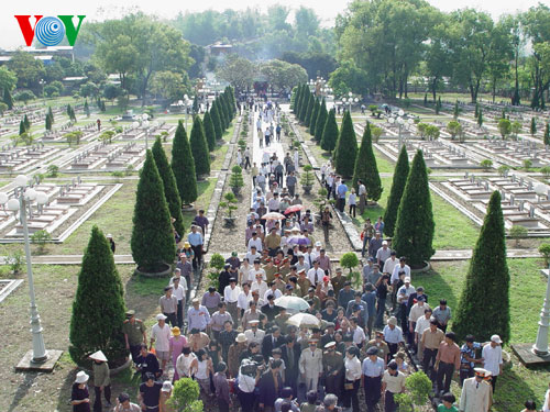 | จุดธูปที่สุสานทหารผ่านศึกที่เนินเอ 1 นครเดียนเบียนฟู. |