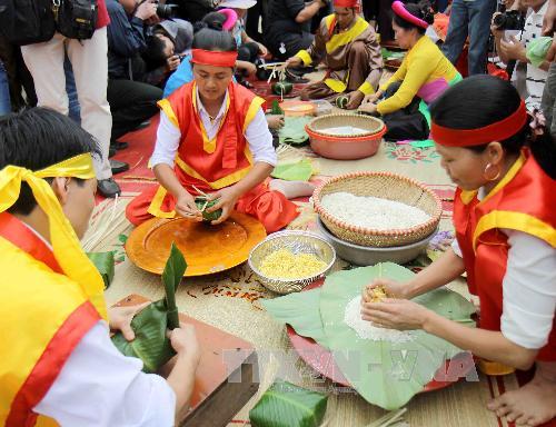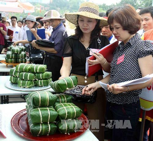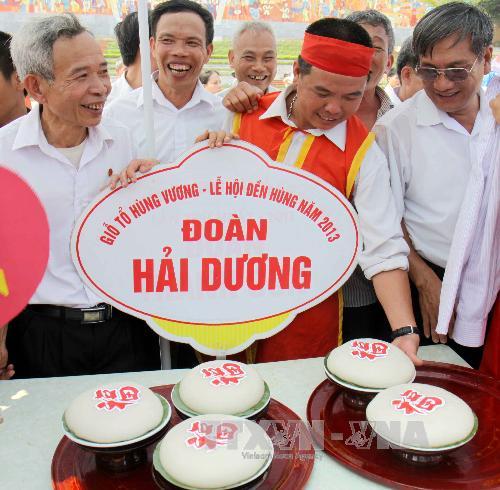 ในกรอบเทศการสักการะบูชาบรรพกษัตริย์หุ่งปี 2013 ได้มีการจัดการประกวดทำขนนม bánhchưng, bánhgiầy หรือขนมข้าวต้มมัดและขนมแป้งข้าวเหนียวที่มีรูปกลมแบนเพื่อถวายในพิธีเซ่นไหว้บรรพกษัตริย์หุ่ง ณ เขตโบราณสถานทางประวัติศาสตร์วิหารหุ่ง โดยมีหลายคณะจากจังหวัด HòaBình, PhúThọ HưngYên, HảiDương, YênBái และ HàNộiเข้าร่วม