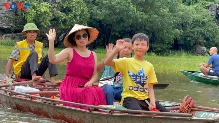 ผู้มาเยือนจะมีโอกาสได้เที่ยวชมแม่น้ำ โงด่ง ที่คดเคี้ยวตามนาข้าวสีทองสองฝั่งและล้อมรอบด้วยภูเขา ซึ่งเป็นภาพที่สวยงามและมีเสน่ห์ (ภาพจาก Minh Hải) |