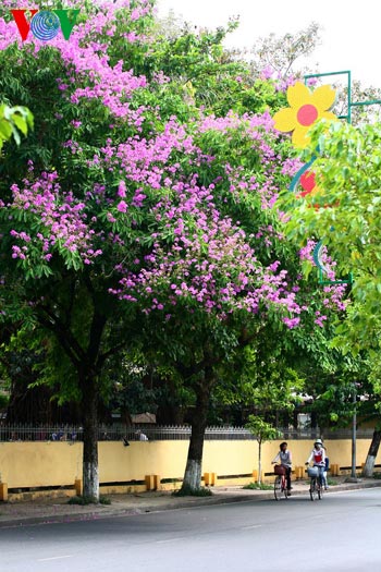 | ดอกหางนกยุงบานสะพรั่งอย่างสวยงามบนถนนLê Lợi |