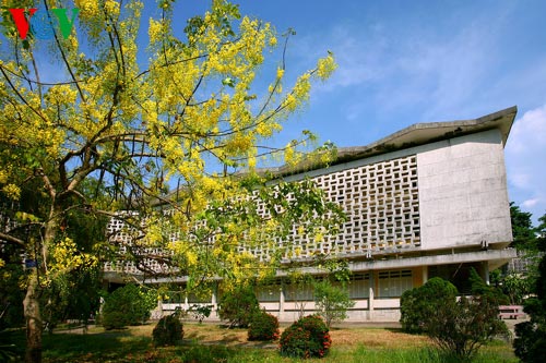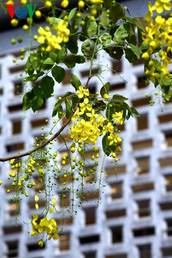 | ดอกราชพฤกษ์บานสะพรั่งในเขตโรงเรียน Quốc học Huế |