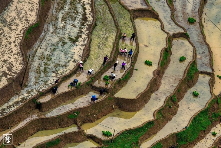 ฤดูฝนหรือฤดูทำนาเป็นฤดูกาลที่ชาวเขาปลูกข้าวเพียงครั้งเดียวในแต่ละปี (ภาพนาขั้นบันไดในหมู่บ้านฝู่ง อำเภอหว่างซูฝี่ จังหวัดห่ายาง จาก NAG Kỳ Nam) |