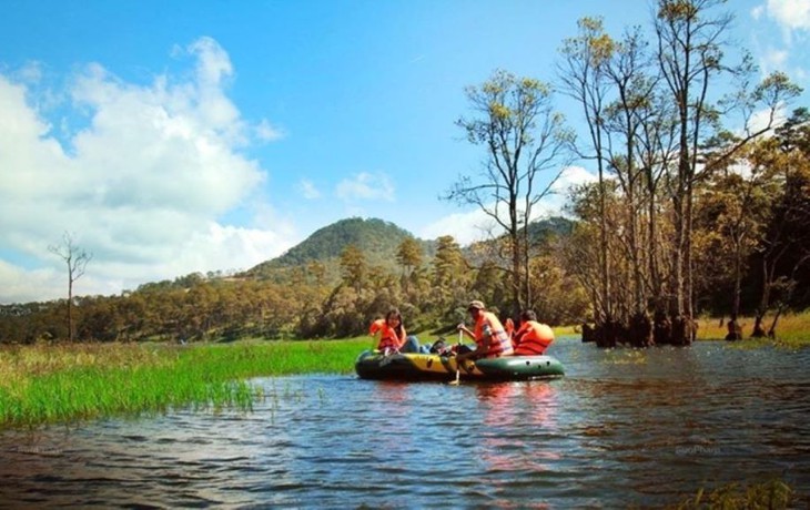 นอกเหนือจากความงดงามที่เปรียบเสมือนทะเลสาบไข่มุกกลางป่าสน ทะเลสาบเตวี่ยนเลิมยังดึงดูดความสนใจของผู้มาเยือนด้วยป่าพรุท่ามกลางสายหมอกยามเช้า (ภาพจาก petrotimes.vn)