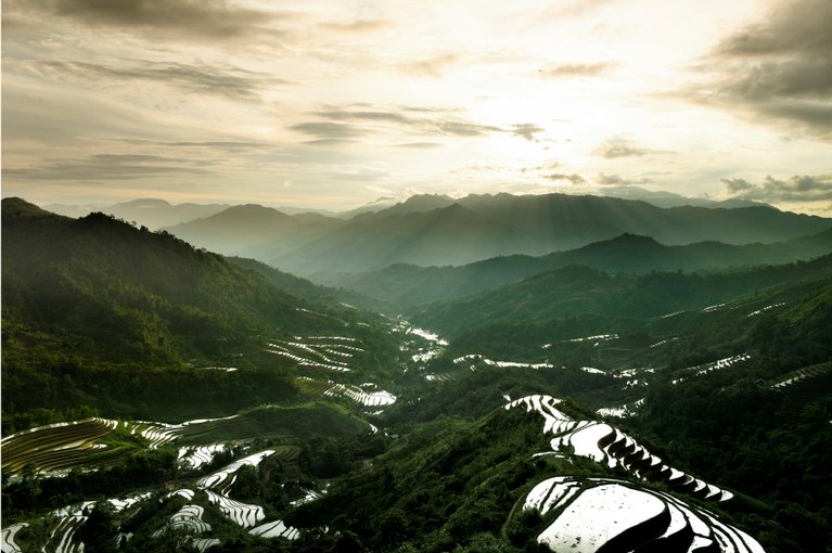 ![]() ทุ่งนาขั้นบันไดในช่วงฤดูฝน