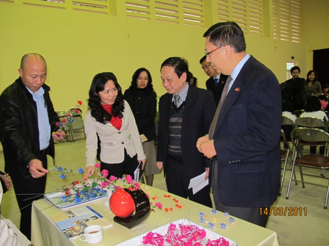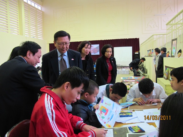 | ท่านเอกอัครราชทูตได้ไปชมงานฝีมือของครูและนักเรียนในโรงเรียน |