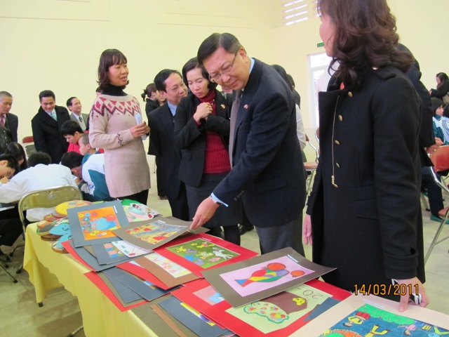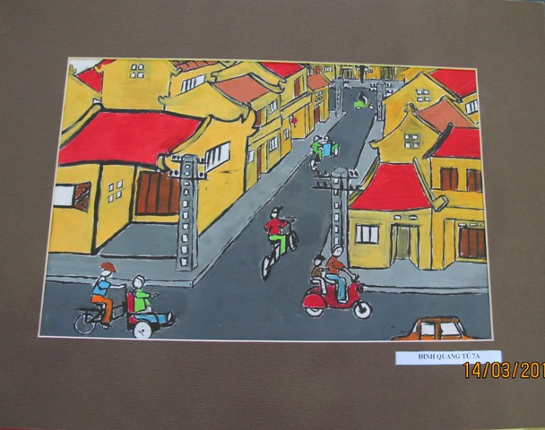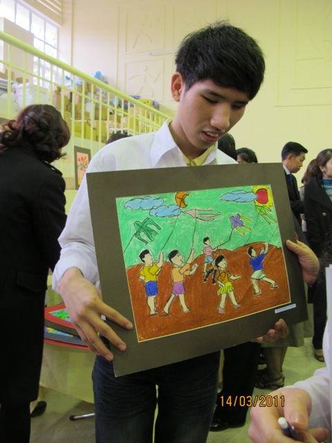 | นัก เรียน Phung Quang Minh- นักเรียนที่ยากจนแต่เรียนดีและภาพวาด ที่เป็นของขวัญมอบให้แก่ ท่านทูตไทย |