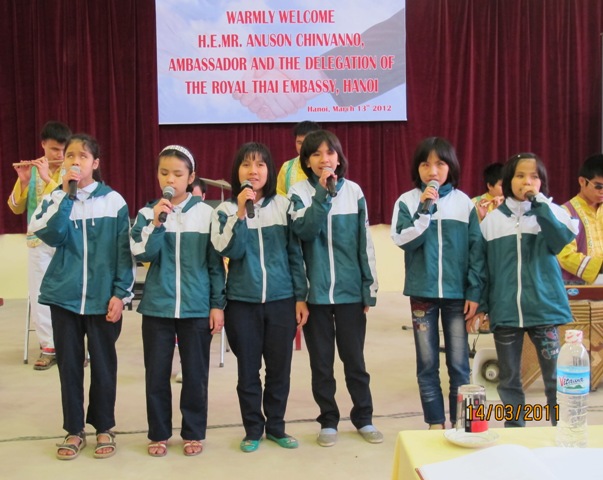 | นาย Thái Văn Khoa ครูใหญ่่โรงเรียนได้แสดงความขอบคุนต่อความช่วยเหลือของสถานทูตไทย สมาคมนักธุรกิจไทยประจำเวียดนาม |