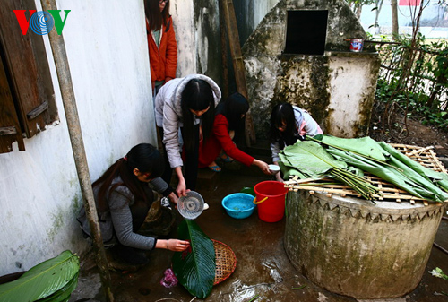 ![]() ล้างใบตองเพื่อเตรียมห่อขนมแบ๊งจึง
