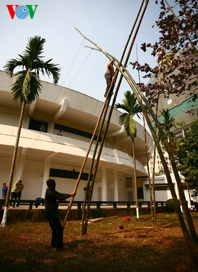 (VOVworld) – เช้าวันที่ 23 มกราคมหรือวันที่ 23 เดือนสิบสองปีมะเส็งจันทรคติ ที่พิพิธภัณฑ์ชาติพันธุ์เวียดนาม ณ กรุงฮานอยได้มีการเปิดรายการต้อนรับตรุษเต๊ดมะเมีย 2014 โดยการจัดกิจกรรมต่างๆ เช่น การตั้งเสาตุง การเส้นไหว้เทพแห่งเตา การห่อแบ๊งจึงและการละเล่นพื้นบ้านต่างๆ โดยเฉพาะมีการพูดคุยเกี่ยวกับประเพณีวัฒนธรรมการต้อนรับตรุษเต๊ดของนักวิจัยวัฒนธรรมฝ่ามซวนเงวียนกับนักท่องเที่ยว ส่วนในวันที่ 4 ตรุษเต๊ด จะมีการแสดงเขียนตัวอักษร การวาดภาพพื้นเมืองดงโห่ เป็นต้น ซึ่งกิจกรรมต่างๆจะมีขึ้นอย่างคึกคักจนถึงวันตรุษเต๊ดที่ 9 และ 10