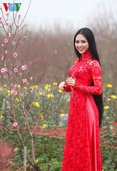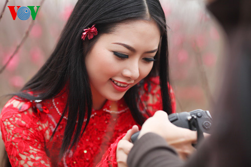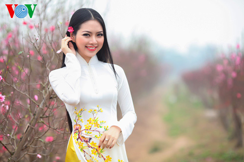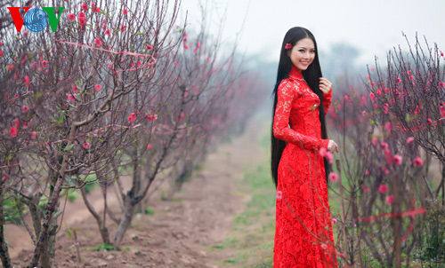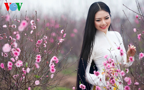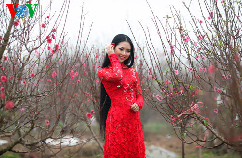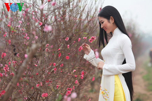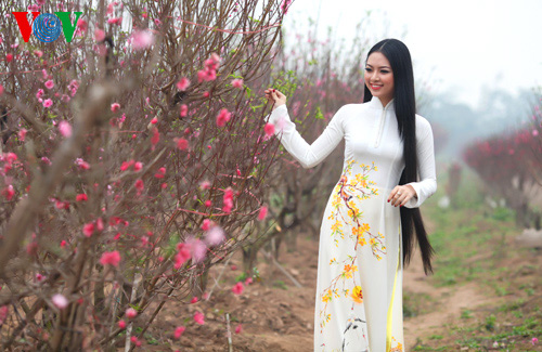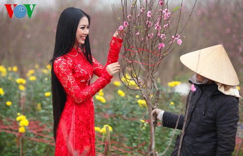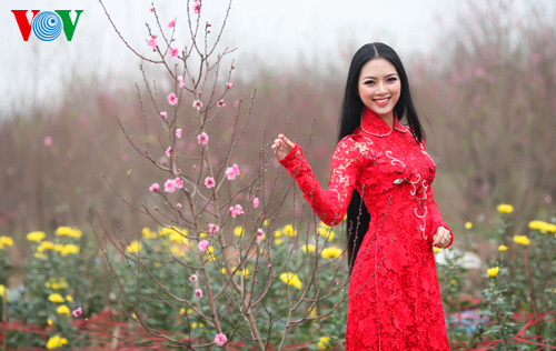(VOVWorld)-เทศกาลตรุษเต๊ดปีมะเมีย ๒๐๑๔ตามประเพณีกำลังใกล้เข้ามา ช่วงนี้ สวนดอกท้อ เญิดเตินในกรุงฮานอยดูสวยงานยิ่งเพราะสีสันสดสวยของดอกไม้โดยเฉพาะดอกท้อที่บานสะพรั่ง ซึ่งเป็นเอกลักษณ์ของตรุษเต็ตตามประเพณี และเป็นจุดึงดูดผู้คนรวมทั้งหนุ่มสาวมาชมและถ่ายรูปเป็นที่ระลึกในโอกาสวสันต์เวียนมา นางสาว เหงียนถิหงอกแอง มิสส์ชนกลุ่มน้อยเวียดนามปี๒๐๑๓ได้มีชุดภาพถ่ายที่สวยงามในโอกาสมาเยือนสวนดอกท้อแห่งนี้