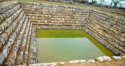 | กำแพงราชวงศ์โห่ทำจากหินสกัดเป็นก้อนสี่เหลี่ยมขนาดใหญ่ |
