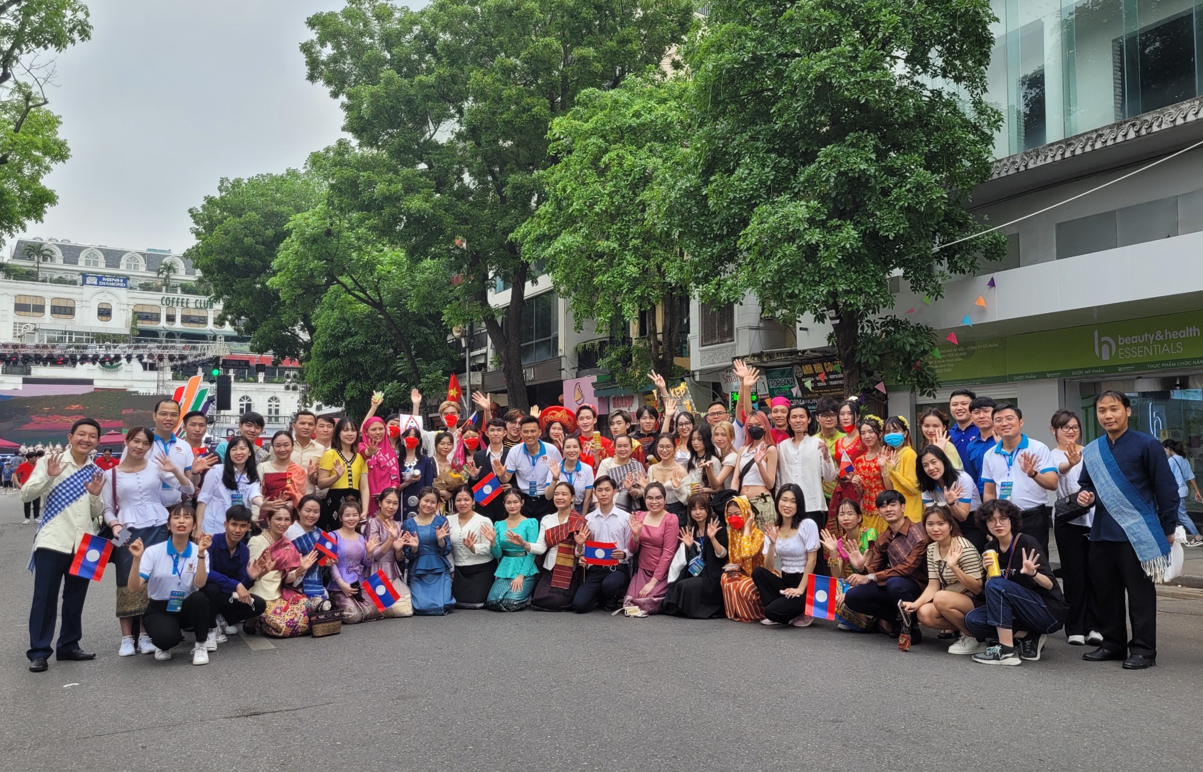 ผู้แทนฝ่ายเวียดนามเดินขบวนพาเหรดรอบทะเลสาบ หว่านเกี๊ยม ร่วมกับบรรดาผู้แทนจากสถานเอกอัครราชทูตประเทศอาเซียน |