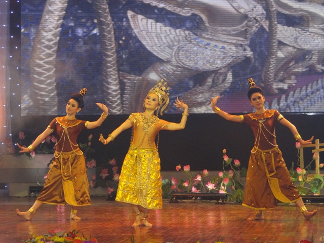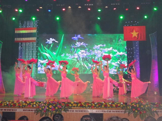 ระบำดอกบัวแห่งมิตรภาพแสดงโดยนักเรียนไทยที่เรียนภาษาเวียดนามในฮานอย