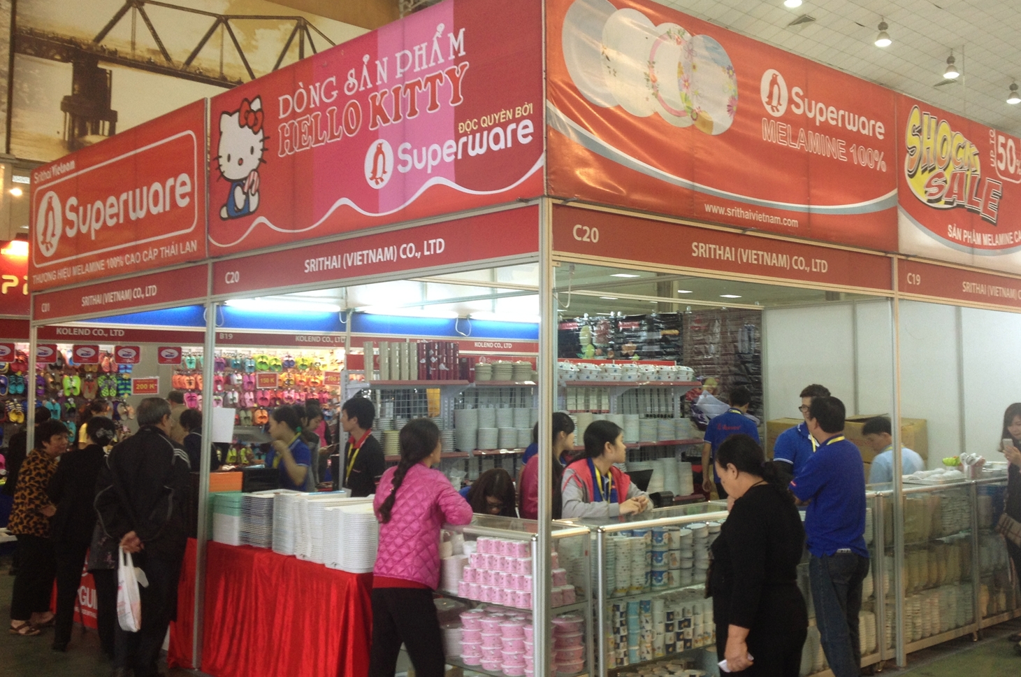 (VOVworld) – บริษัทหุ้นส่วนโฆษณาและงานแสดงสินค้าหรือ VINEXAD ร่วมกับสถานเอกอัครราชทูตไทยประจำเวียดนามและกรมส่งเสริมการค้าต่างประเทศแห่งกระทรวงพานิชย์ไทย ได้จัดขึ้นงานแสดงสินค้าไทย MADE IN THAILAND OUTLET 2016 ระหว่างวันที่ 7 ถึงวันที่ 10 มกราคม ณ ศูนย์วัฒนาธรรมและแรงงานมิตรภาพเวียด-โซ ในกรุงฮานอย โดยมีการเข้าร่วมของ สถานประกอบการ 120 แห่งและมีการออกบูธกว่า 150 บูธที่แนะนำสินค้าที่มีคุณภาพสูงของไทย และงานครั้งนี้เป็นกิจกรรมแรกในกรอบการส่งเสริมทางการค้าเพื่อฉลองครบรอบ 40 ปีการสถาปนาความสัมพันธ์ทางการทูตเวียดนาม-ไทย ในวันนี้ รายการภาคภาษาไทยขอเสนอภาพบรรยากาศวันแรกของงาน.
