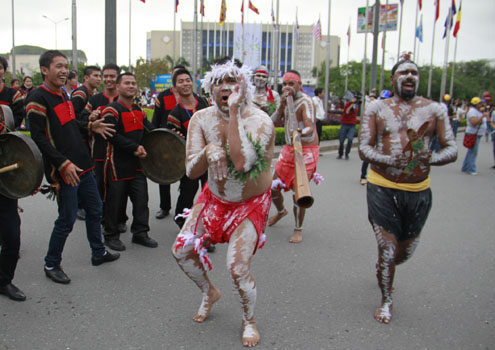 | คณะศิลปีนออสเตรเลียนำเสนอบรรยากาศที่เป็นธรรมชาติของชาวเผ่าพื้นเมืองอะบอริจิ้น |